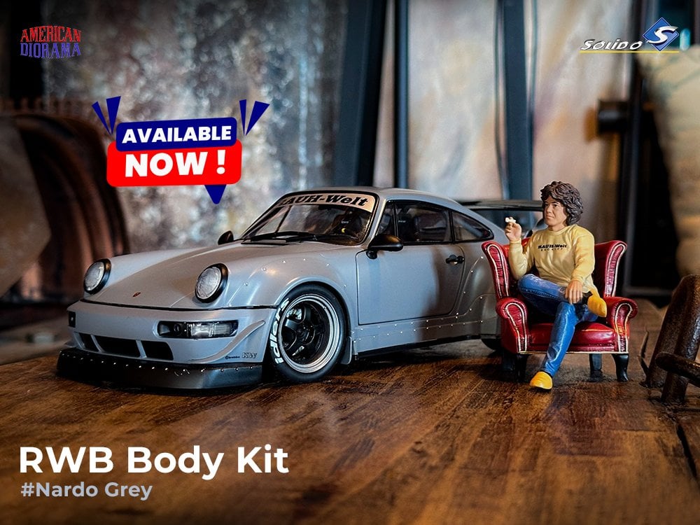 1:18 Solido 2024 Porsche 964 RWB Nardo Grey With Akira Nakai Figurine